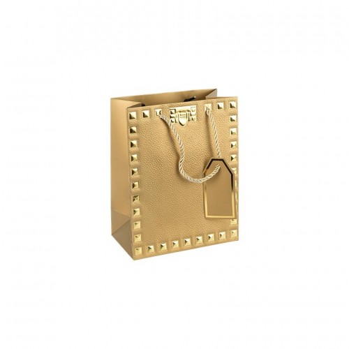 Подарунковий пакет із декоративним золотим оформленням — стильне рішення для презентабельного пакування товарів. Висота — 15 см, ширина — 12 см, ширина дна — 7 см. Матеріал — щільний картон із фактурним рельєфом під шкір... Читати далі...