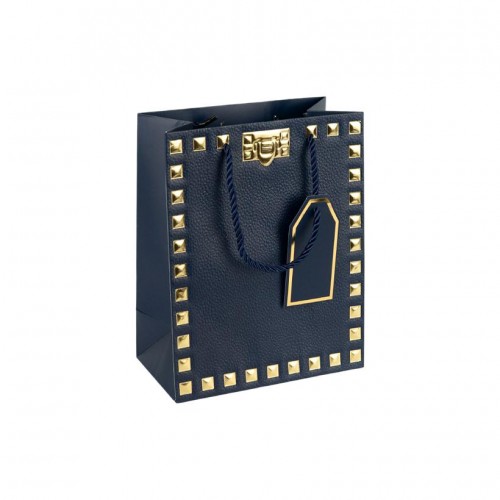 Пакет подарунковий 18х23х10 см із тисненням фольгою DARK BLUE HL-1925