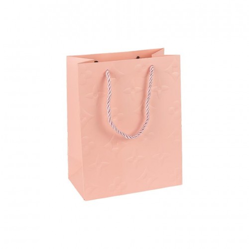 Подарунковий пакет однотонний з рельєфним тисненням — практичне рішення для акуратного пакування товарів. Висота — 23 см, ширина — 18 см, ширина дна — 10 см. Матеріал — щільний картон, ручка виконана з текстильного шнура... Читати далі...
