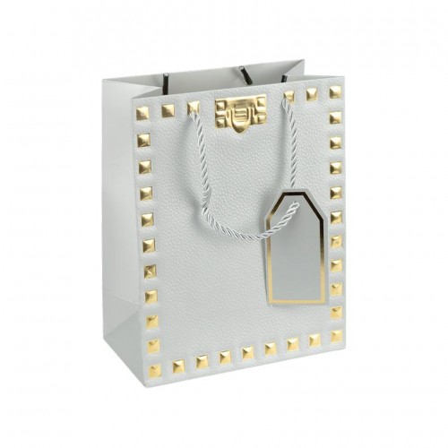 Подарунковий пакет із декоративним золотим оформленням — стильне рішення для презентабельного пакування товарів. Висота — 32 см, ширина — 26 см, ширина дна — 12 см. Матеріал — щільний картон із фактурним рельєфом під шкіру, ручка виконана з текстильного шнура. Золотий декор розташований на лицьовій стороні пакета. Формат підходить для пакування косметичних наборів, невеликих коробок, аксесуарів і сувенірів. Міцна конструкція та стійке дно забезпечують зручність під час перенесення. Товар вигідний для оптових магазинів і підходить для роздрібного продажу. Ціна вказана за 1 одиницю товару, продається упаковкою по 12 шт.