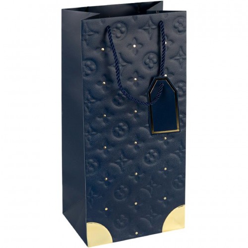 Пакет подарунковий 38х18х13 см із золотим декором "Пляшка" DARK BLUE HL-1893
