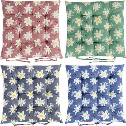 Подушка на стілець 40*40см "Ромашки" стьобана із зав'язками №3