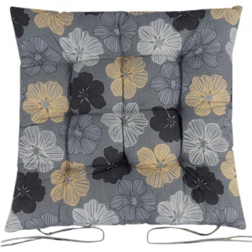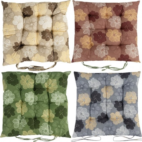 Подушка на стілець 40*40см "Великі квіти" стьобана із зав'язками №4
