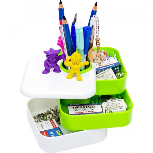 Стакан для ручок пластиковий для письмового приладдя, кольори в асортименті. 10*10*9см Діаметр отвору 4см... Читати далі...